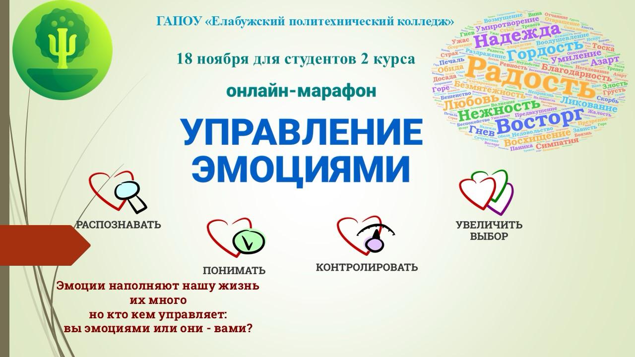 Опубликовано: 18.11.2024С целью создания психологически безопасного и развивающего образовательного пространства, 18 ноября 2024 года в Елабужском политехническом колледже стартовала Всероссийская «Неделя психологии», в рамках которой педагогами - психологами организуется активность студентов, родителей и кураторов учебных групп.