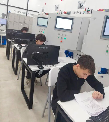 Первый день — теоретический конкурс. Участникам предстояло пройти тестирование по специальным дисциплинам, выполнить перевод технического текста с английского языка, решить задачи по экономике и написать технологический процесс изготовления детали по чертежу. Эти задания позволили оценить не только профессиональные знания, но и умение работать с технической документацией, а также владение иностранным языком, что особенно важно в условиях современного производства.