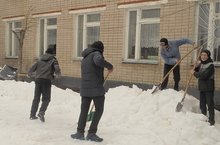 2 апреля учащиеся старших классов и учителя вышли на субботник. Все дружно разбрасывали снег и убирали мусор возле школы.