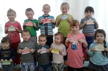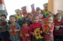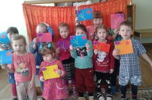 Балалар әтиләрен котлап нәни куллары белән матур открыткалар ясадылар.