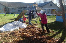 Рәхәтләнеп уйныйбыз 20.10.2016 Салкын, яңгырлы көннәрдән соң болытлы булса да, явымсыз көннәр килде. Нәниләр белән урамда рәхәтләнеп төрле йөгерек: "Казлар, казлар", "Ал кирәк, гөл кирәк", "Буяу сатам", "Әбәкле", "Самолеты", "Хитрая лиса" уеннарын яратып уйныйбыз.