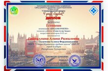 "Үсеш ноктасы" мәгариф өлкәсендә проектларны үстерү үзәге оештырган, "Мин инглизчә сөйләшәм" V халыкара бәйгесендә өченче сыйныф укучысы Гайнуллина Алинә I дәрәҗә диплом белән бүләкләнде. Котлыйбыз! Уңышлар телибез!