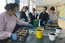 Бүген без мәктәп яны бакчасында үстерү өчен үсентеләр утырттык. "Язгы бер көн-ел туйдыра" мәкален беркайчан истән чыгармыйбыз.
