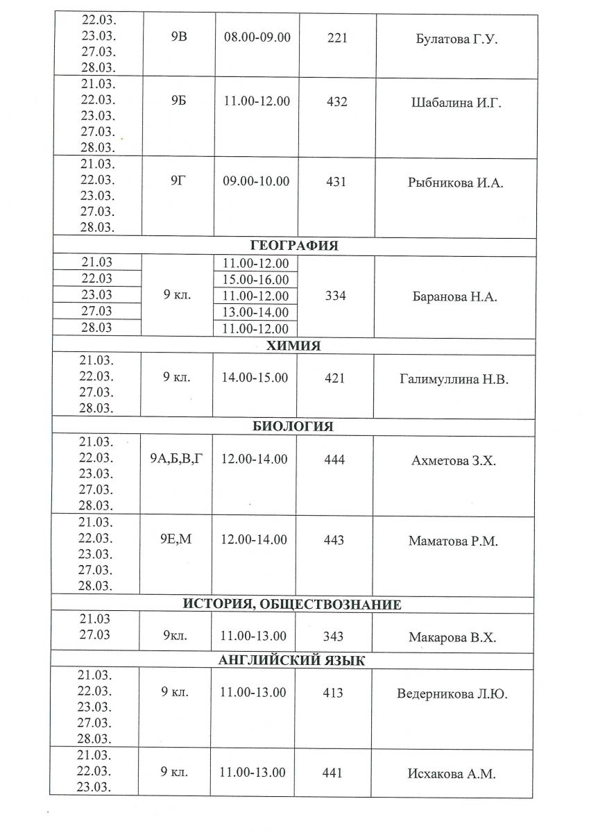 Графики консультаций по подготовке к ОГЭ и ЕГЭ во время весенних каникул