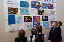 В преддверии празднования Дня космонавтики среди учащихся начальных классов был организован конкурс рисунков "Навстречу к звездам". Лучшие работы были вывешены на информационном стенде и ребята с удовольствием рассматривали рисунки своих ровесников