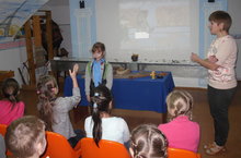 Перед каникулами учащиеся начальных классов побывали в мультимедийном зале Елабужского музея-заповедника, где совершили в путешествие по реке времени: познакомились с трудными и интересными профессиями музейных работников, , ами искали сокровища старины, реставрировали их, выставляли на экспозиции и проводили экскурсии для туристов. Не обошлись занятия и без игр, на которых