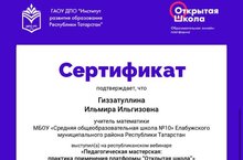 Наши педагоги провели серию вебинаров, выступив спикерами на вебинарах платформы «Открытая школа» на тему: Эффективность использования контента платформы на различных этапах урока. Благодарим Гиззатуллину И.И., Жучкину И.П., Хабибуллину А.А., Тешабаеву Г.Р., Шилину В.В., Ашкарову Л.М. Видео вебинаров в обработке и скоро будет доступно каждому. Диссеминация передового педагогического опыта молодых и перспективных коллег бесспорно внесет свой вклад в наши очередные победы в конкурсе "Лучшая цифровая школа РТ".