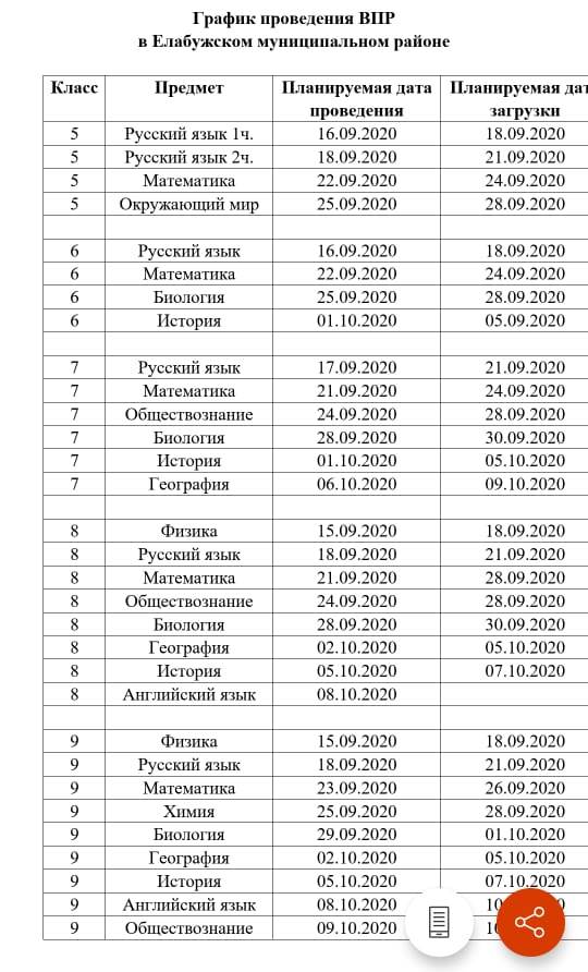 Утверждённое расписание Всероссийских проверочных работ на осень 2020 года 25.10.2020