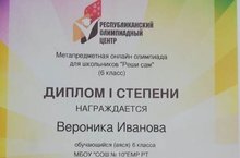организованный МО и Н РТ, ученицу 6 Б класса Иванову Веронику и учителя математики Жучкину Ирину Павловну.