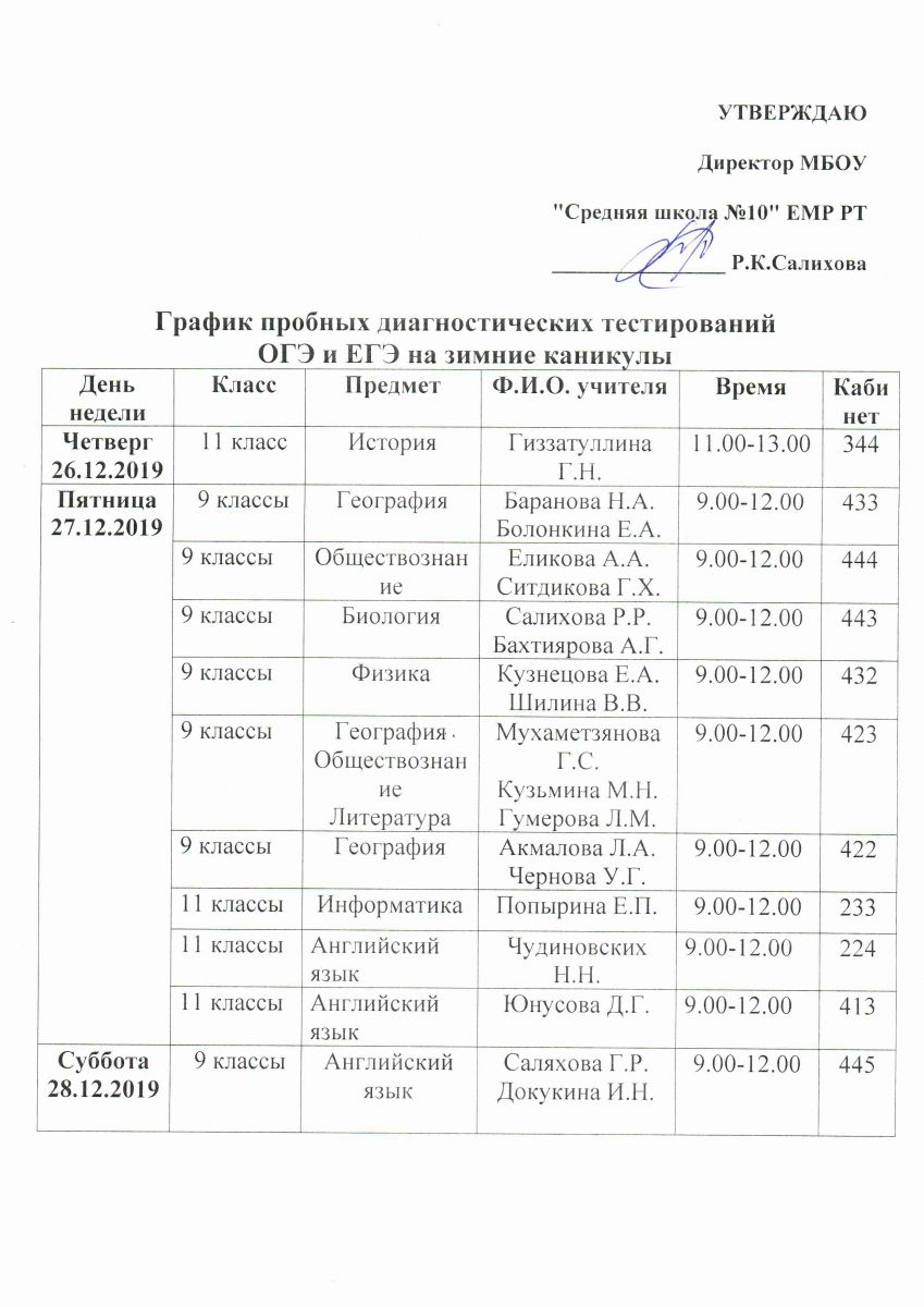 - 24 декабря 2019 года по математике,- 15 января 2020 года по русскому языку.11 сыйныф укучыларын рус теле һәм математикадан бердәм дәүләт имтханнарына әзерләү өчен 2019-2020 уку елында Алабуга муниципаль районы терреториясында “МБОУ “СОШ №9” да 08.30 дан сынау имтиханнары үтәчәк:24 декабрь 2019 ел- математика15 январь 2020 ел – рус теле -