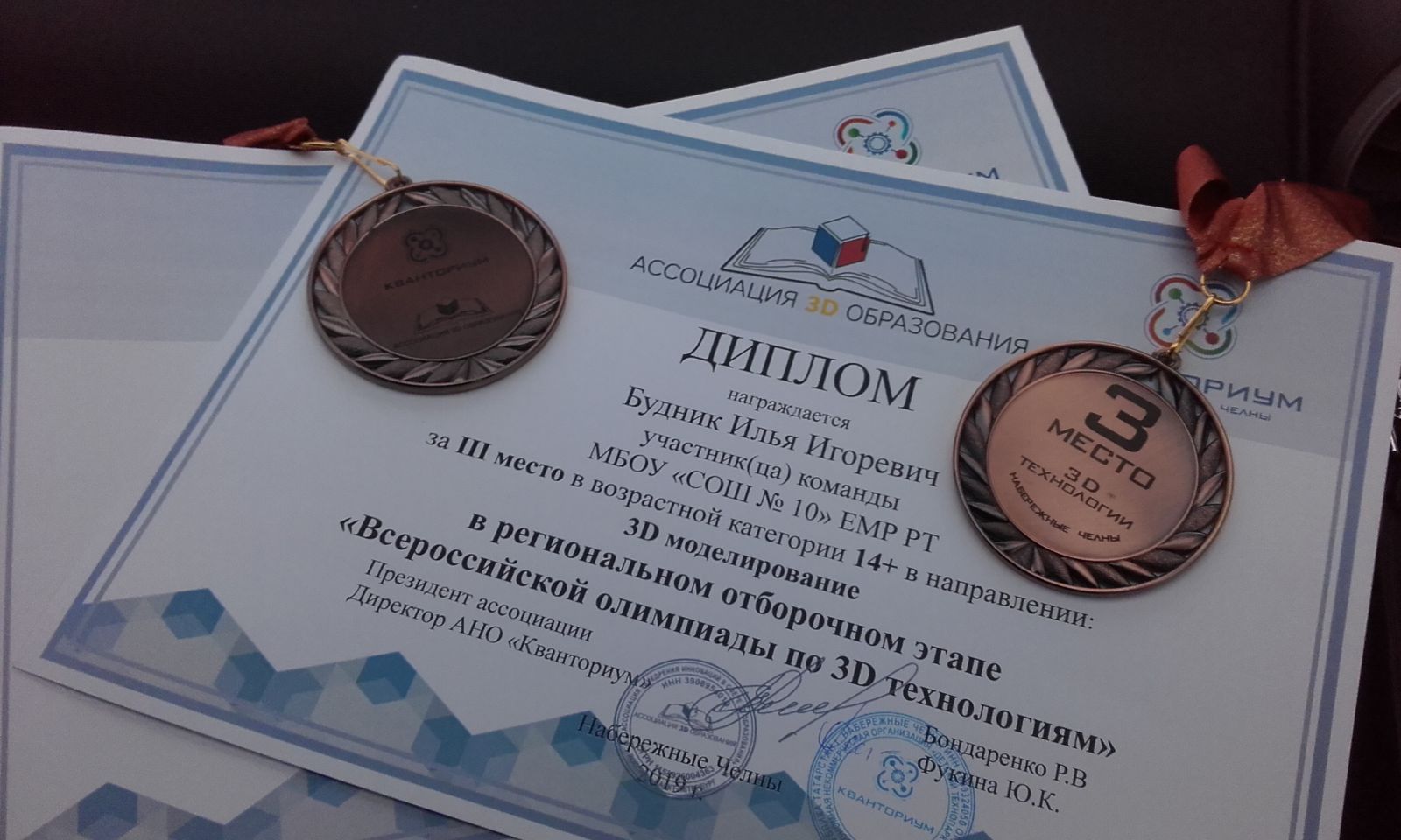 Учащиеся нашей школы получили дипломы третьей степени в Региональном отборочном этапе открытой Всероссийской Олимпиады по 3D технологиям