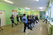 В общешкольной утренней зарядке участвовали учителя, администрация, технические работники школы и конечно же ученики 1-9 классов.Так, в школе, в назначенное время все сотрудники и дети, пришедшие на занятия, в фойе второго этажа выстроились в две шеренги и приступили к выполнению несложных физкультурных движений.