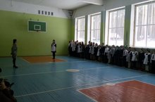В рамках месячника гражданско-патриотического воспитания в школе прошел смотр строя и песни. Укучыларга патриотик тәрбия бирү айлыгы йөзеннән мәктәптә җыр белән стройда йөрү айлыгы үтте.