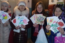 Учащиеся 6А класса вместе со своим классным руководителем Гульнарой Зуфаровной поздравили с наступающим Международным женским днём-8 Марта неорганизованных пенсионеров по адресам: пр-т Мира, 15 и пр-т Мира, 17. Ребята с теплыми пожеланиями подарили прекрасные открытки, выполненные своими руками от всего сердца. С наступающим весенним праздником!Автор Ахматнурова Г.З.