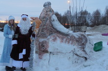 Стало традицией создание снежных фигур силами школ города на Шишкинских прудах. В этом году снежные фигуры представлены знаками Зодиака. Наш Бык возвещает о наступлении Нового года с пожеланиями благополучия, удачи, успехов .