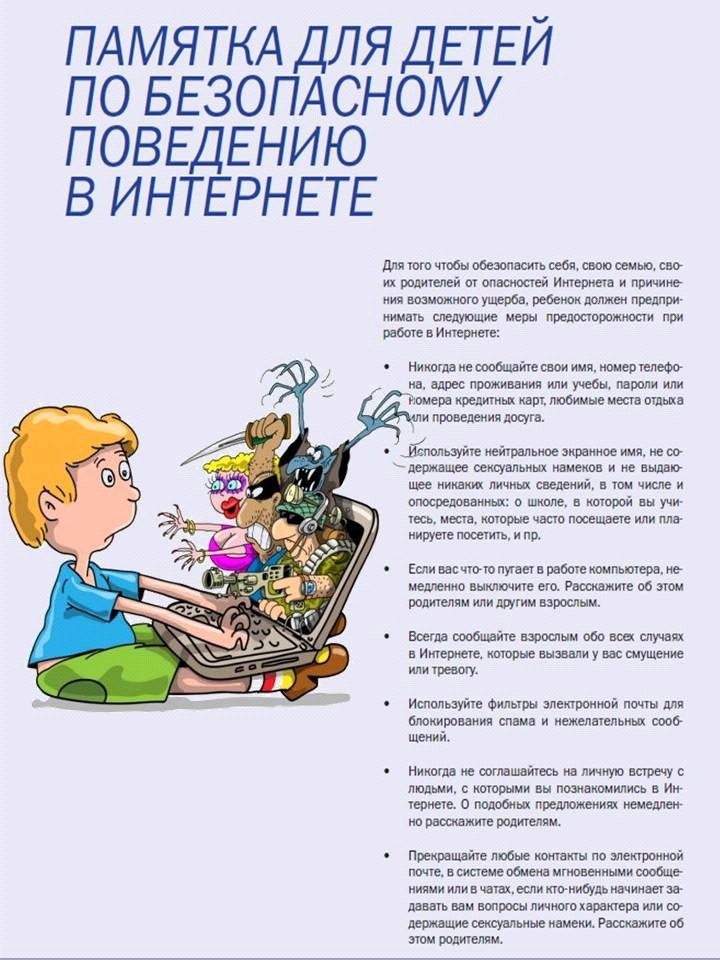 Памятка для детей по безопасному поведению в интернете