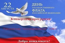 Внимание! 22 августа в 11.00 состоится концертная программа, посвященная Дню государственного флага Российской Федерации.