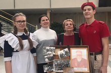 Сегодня в городском Дворце культуры прошло мероприятие "Дорогами боевой славы". Наши учащиеся Ларионова Анна, Беляев Карим и педагоги Шахматова Анастасия Михайловна, Шакирова Фрида Касымовна представили выставку "Музей в чемодане".