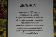 10 сыйныф укучылары арасында «Армиядә хезмәт итәргә әзер! " дигән волейбол ярышлары уткэрелде.» Ватанны саклаучылар көненә һәм Җиңүнең 75 еллыгына багышланган гражданлык-патриотик тәрбия айлыгы да узды.