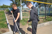 Силами обучающихся 8 и 6 классов в спортивном зале школы идет подготовка к новому учебному году.