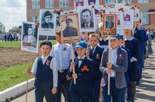 8 май көнне 11.15та мәктәптән «Үлемсез полк» хәрәкәте башланды. Анда 3-9 нчы сыйныф укучылары катнашты, алар үзләренең бабаларының, сугыш геройларының һәм тыл хезмәтчәннәренең портретларын горурлык белән күтәреп бардылар. Ел саен әлеге акциягә теләк белдерүчеләр саны арта бара.