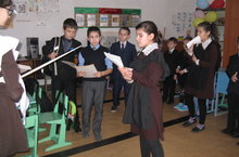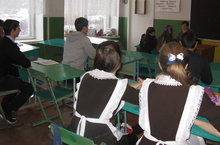 В 11 классе был проведен урок толерантности. Учащиеся выступали по группам, отвечали на вопросы, проводили опрос среди учителей.