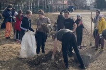 В субботнике приняли участие ученики 2-11 классов, учителя и работники школы. Все вместе убирали прошлогоднюю листву, собирали мусор, подметали дорожки.