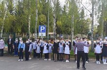 Работники школы и учащиеся правильно и быстро среагировали на сигнал тревоги, организованно вышли из здания школы и оперативно выстроились на площадке перед школой.