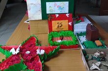 В школе проходит выставка поделок к 75 -летию Победы в Великой Отечественной войне.