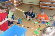 Детишки подготовительной к школе группы собирают лего-конструкторы по ФГОС. Ребята очень хорошо справляются с мелкими деталями.