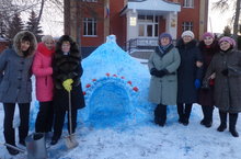 Сотрудники детского сада, несмотря на дождливую погоду в середине зимы, сделали снежную фигуру у РДК. Ведь они у нас мастера: успевают везде, умеют всё!