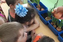 Воспитанники всех групп весело сажают лук, помидоры, огурцы, цветы. Поливают, ухаживают за ними и наблюдают за тем, как они растут. Это и трудовое воспитание, и исследовательская деятельность, и познание окружающего. Вот так и развиваются наши малыши!