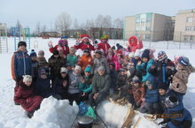У детишек праздник! С играми, плясками, с мультипликационными героями и вкусными блинами встречали весну-красну!