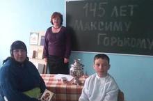 В апреле 2013вся страна отмечала 145 лет Максиму Горькому. Мы не могли пропустить эту важную дату, так как М. Горький является очень значимым человеком в истории нашего села. Поэтому, в школе было организовано мероприятие, в ходе которого библиотекатекарь Оленина О.В. провела мини лекцию о жизни писателя, педагог-организатор Тагирова М.Г. с помощью детей инсценировали сюжет из произведения Горького «Детство».