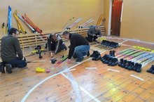 Помощь отцов обучающихся в установке креплений на новые беговые лыжи.