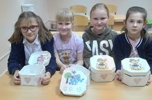 Учащиеся объединения дополнительного образования "Творческая мастерская" (педагог Сороковнина Г.А.) изготовили шкатулки из картона своими руками.