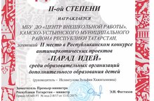Муниципальное бюджетное учреждение дополнительного образования "Центр внешкольной работы" Камско-Устьинского муниципального района Республики Татарстан/ Татарстан Республикасы Кама Тамагы муниципаль районы өстәмә белем бирү муниципаль бюджет учреждениесе "Мәктәптән тыш эшләр үзәге"