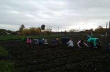 Көзге уңыш җыеп алу дәвам итә. Балалар кызыл чөгендер уңышын җыеп алды.