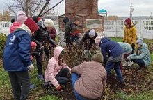 Обучающиеся привели в порядок цветники школы. Заготовили семена цветов на будущий год./ 5-11 сыйныф укучылары мәктәп бакчасында көзге җыештыру өмәсендә катнаштылар.
