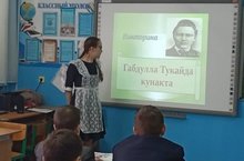 Мәктәптә Тукай атналыгы дәвам итә. Бүген 7 сыйныф укучылары "Габдулла Тукайда кунакта" исемле викторина үткәрделәр. Укучылар бөек шагыйрьнең тормыш юлы һәм иҗаты буенча сорауларга җавап бирделәр./ Обучающиеся 7 класса провели викторину посвященную жизни и творчеству великого татарского поэта Габдуллы Тукая.
