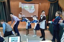 Мәктәптә төрле милләт халыкларының уеннары атналыгы дәвам итә. 9 сыйныф укучылары 5 сыйныф укучылары белән "Күрсәт әле, үскәнем", "Поезд", "Ак калач" уеннарын уйнадылар. / Обучающиеся 9 класса ознакомили 5 класс с татарскими народными играми.