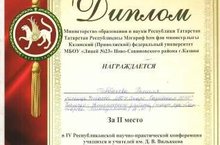 Обучающаяся 7 класса, Габбасова Р. заняла второе место в IV Республиканской научно-практической конференции учащихся и учителей им.Д.В.Вилькеева. Руководитель Саттарова А.М. Поздравляем! Желаем дальнейших успехов!