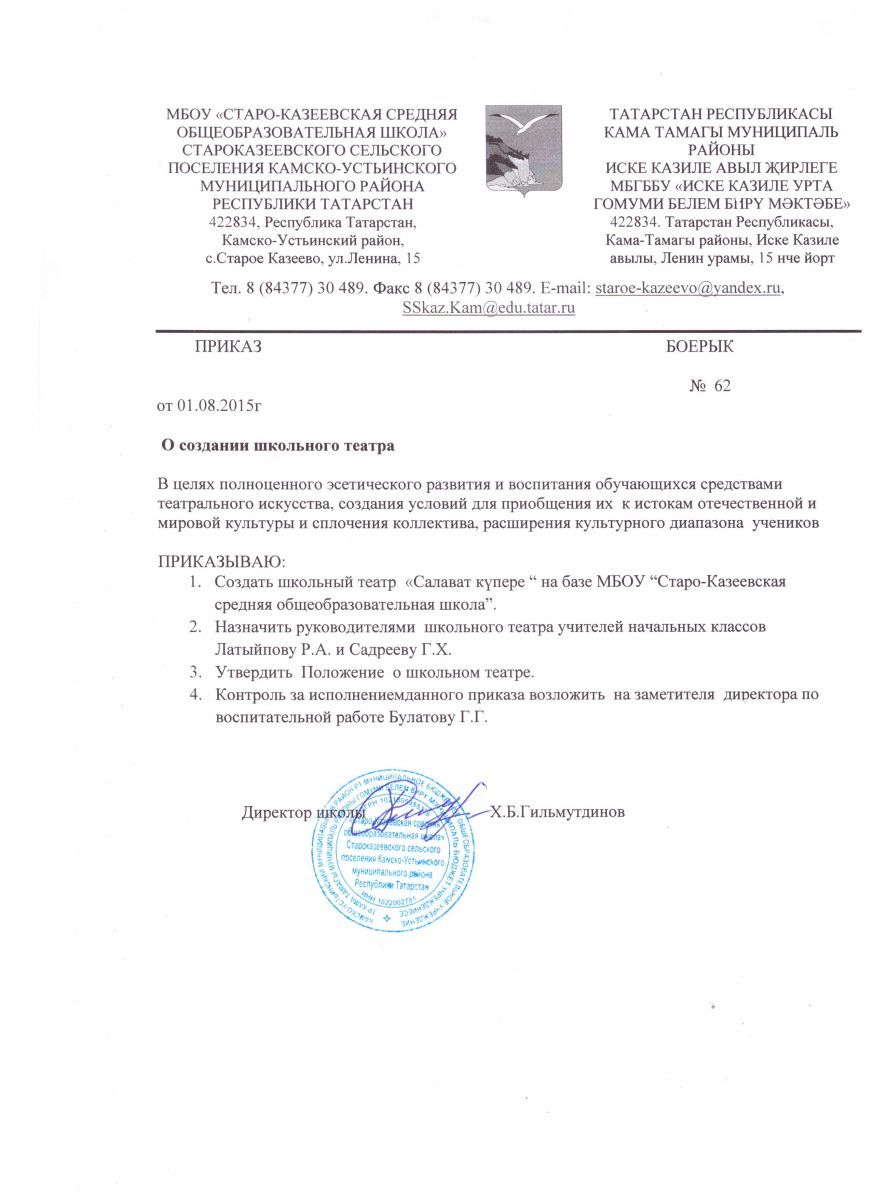 Приказ о создании школьного театра.