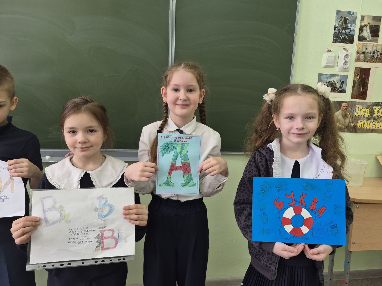 17 март көнне 1А да (сыйныф җитәкчесе Вазыхова Р.Х.) "Буква"темасына багышланган мавыктыргыч проектлар якланды. Кечкенә тикшеренүчеләр, тормышыбызда хәрефләрнең мөһимлеген тирән аңлауларын күрсәтеп, үз эшләрен горурлык белән тәкъдим иттеләр.