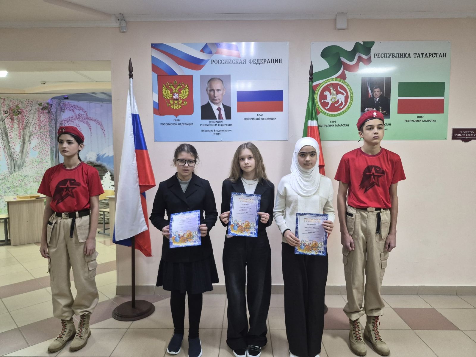 19 января прошла еженедельная линейка с исполнением гимнов РФ и РТ. Участниками стали обучающиеся 5-7 классов. Почетное право поднять государственные флаги Российской Федерации и Республики Татарстан предоставили юнармейцам Гурьяновой Милене и Давлетшину Аделю. Прошло ознакомление с государственными значимыми датами и событиями, которые наша страна будет отмечать на предстоящей учебной неделе. Были вручены грамоты и дипломы участникам школьных конкурсов и акций.