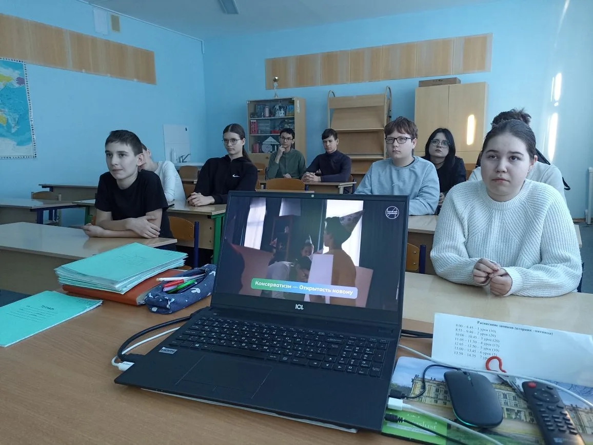В рамках участия в проекте «Киноуроки в школах России» учащиеся школы с советником директора по воспитанию Гимадиевой Г.К. посмотрели и обсудили короткометражные фильмы «Школьные ботаны» и «Живой город».