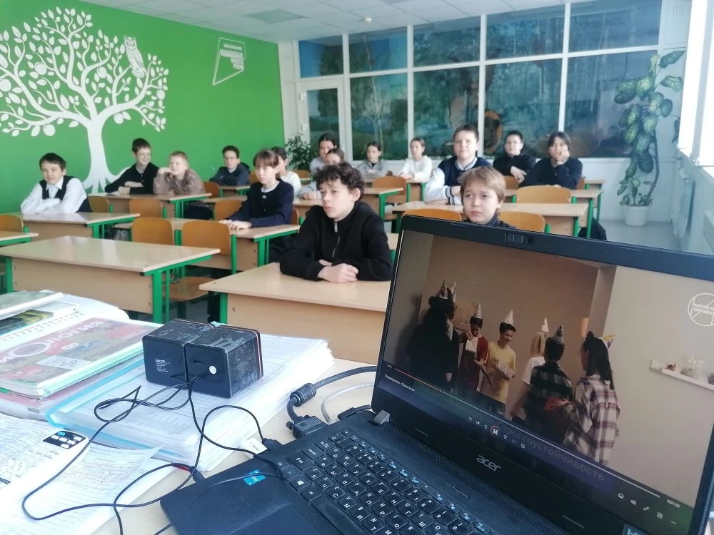 «Россия мәктәпләрендә Киноуроклар» проектында катнашу кысаларында мәктәп укучылары тәрбия буенча директор киңәшчесе Гыймадиева Г.К. белән «мәктәп ботаннары» һәм «Тере шәһәр»кыска метражлы фильмнарын карадылар һәм фикер алыштылар.