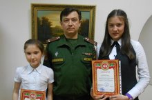 Военный комиссар Камско-Устьинского района Сергеев Д.В. поздравил победителей и вручил им диплом и электронный сборник, созданный Республиканской детской библиотекой совместно с Военным Комиссариатом РТ по итогам конкурса с информацией о каждом победителе конкурса и текстами исполняемых ими произведений.