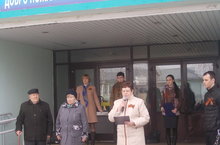 На линейке прошло торжественное открытие баннеров, расположенных на стене школы с двух сторон. Справа – символ 70-летия Победы, слева - изготовленный по проекту и творческой задумке учащихся школы. Открывая баннеры, директор школы Елена Александровна сказала: «Храня память Победы, мы хотим, чтобы вы выросли смелыми, сильными людьми, достойными гражданами нашей страны, любящими свою Родину и способными в трудную минуту встать на ее защиту».