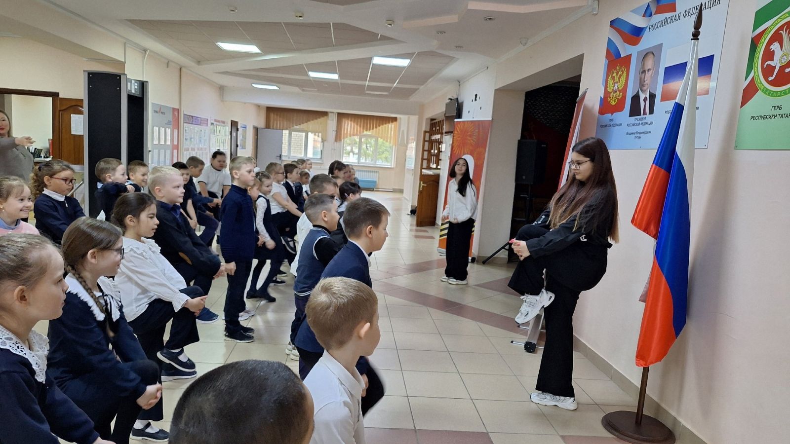 7 нче апрель көнне 1-4 нче сыйныф укучылары РФ һәм ТР гимннарын башкару линейкасында катнаштылар. Яшь армиячеләр Галиуллин Эмиль һәм Гыйниятов Даниярга Россия Федерациясе һәм Татарстан Республикасы дәүләт флагларын күтәрү хокукы бирелде. Киләчәк уку атнасында илебез билгеләп үтәчәк дәүләт әһәмиятле даталары һәм вакыйгалары белән танышу булды. Линейкада муниципаль һәм республика конкурсларында, ярышларында һәм акцияләрендә актив катнашкан укучыларга грамоталар тапшырылды. Молодцы! Шулай тотарга!